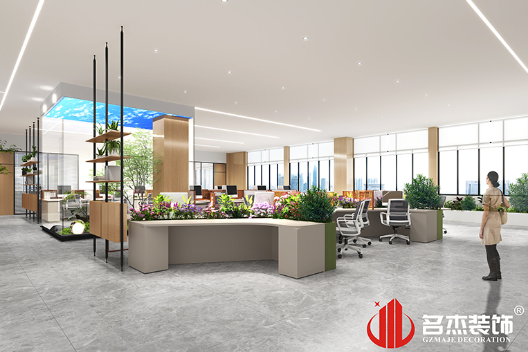設計說明:設計團隊在展廳區域使用具有科技元素的藍色,作為該空間的主導色,配合圓弧型的吊頂造型,讓空間具有科技感的同時,還能具有設計層次感。而且前台區域的設計中,讓成人蘑菇视频LOGO色作為空間的點綴色,使用在前台桌子上,搭配造型感十足的吊頂,讓空間更具有設計層次感。#廣州蘑菇视频网址設計#